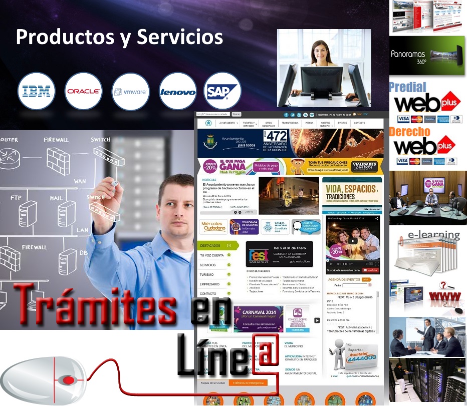 Implementación de Sistemas para la administración pública municipal. Consultoría en Gobierno Electrónico. Desarrollo de Portales Municipales con tecnología CMS y fases de e-gobierno. Implementación de enlaces de Datos Metropolitanos WAN. Consultoría en adopción de lineamientos de la Ley General de Contabilidad Gubernamental y Armonización Contable. Presupuestación en PBr y Evaluación del desempeño. Desarrollo de módulos de sistema integral de Administración Financiera para entes públicos GRP.