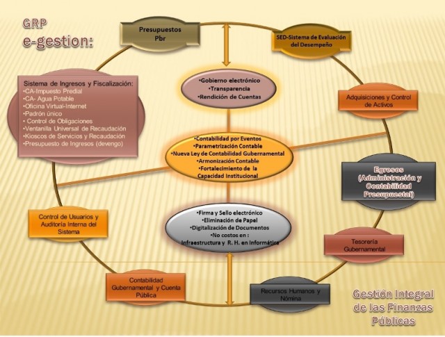 Sistema GRP (Diseño e implementación de los módulos de presupuestación Pbr, contabilidad por eventos, ingresos, egresos, adquisiciones, Inventarios, recursos humanos y nóminas, padrón único de contribuyentes, módulo de obras públicas. Integración de módulos y unificación del sistema en una sola base de datos). Ventanilla de trámites y pagos electrónicos. Catálogo estático de trámites del ente público (descriptivo). Plataforma de Tramitación en línea (fases del trámite, colección de documentos digitales, dictaminación de autoridades y firmas electrónicas, motor de comunicación por email con el ciudadano y ticket’s, sistema de atención en chat con inteligencia artificial). Plataforma de Citas Online para el Sector Público CitaGob (Asistente fácil e intiutivo para realizar citas por el ciudadano, panel para el ciudadano y agentes de atención. Panel de administración para superusuario, notficaciones y recordatorios por Email y SMS, implementación de App para SmartPhones).